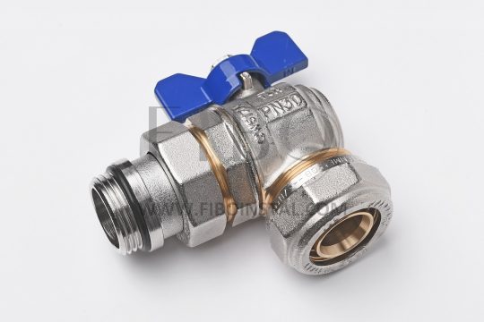 Zawór kulowy kątowy ze śrubunkiem do rozdzielaczy instalacji wody użytkowej, C.O. itp.