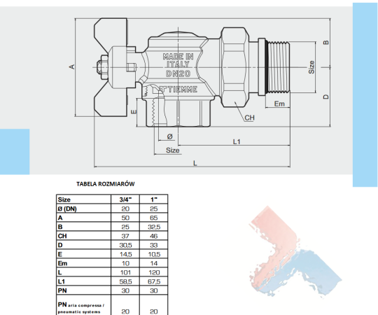 - Korpus: mosiądz CW617N-EN12165 niklowany