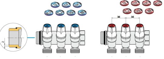 Available with delivery 3/4” or 1″ and 1, 2, 3, 4, 5 or 6 pipe connections with distance between axis of 36mm or 50mm..