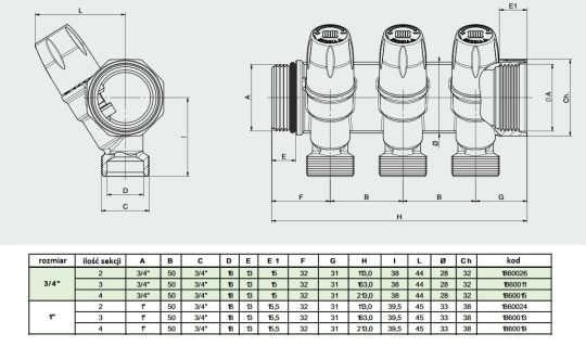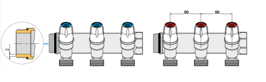 Do wyboru są rozdzielacze z belką główną w rozmiarze 1″ oraz 3/4″.