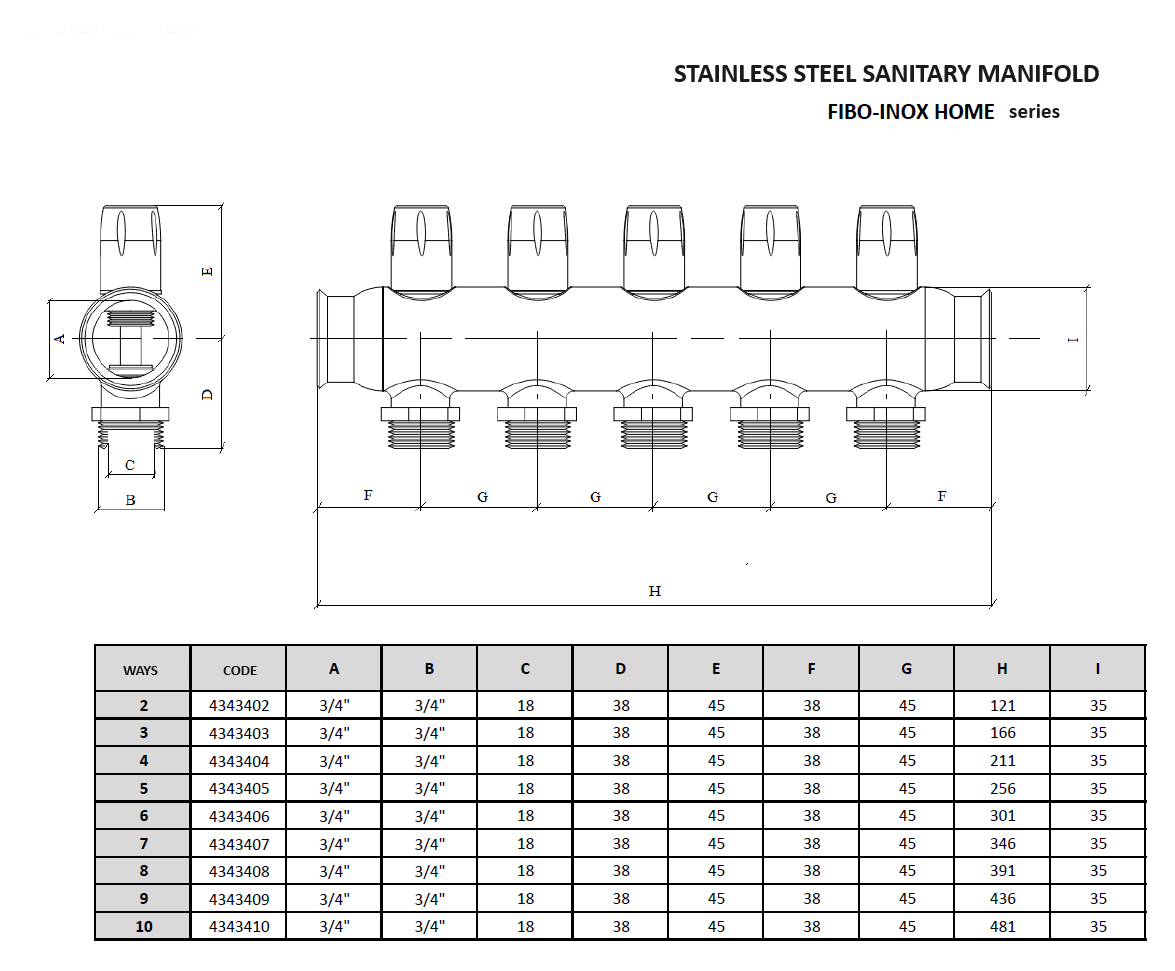 There are two sizes of section connection threads to choose from: 1/2″ and 3/4″, which allows you to optimally adjust the manifold to your needs.