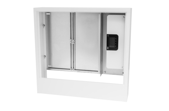 Przegroda półki rozdziela i zabezpiecza umieszczony w szafce sterownik.